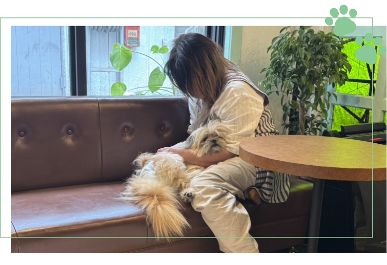 同じ空間にスタッフがおりますのでふれあいが初めて、不慣れな方でもわんちゃんと楽しく過ごせるようサポートいたします!
